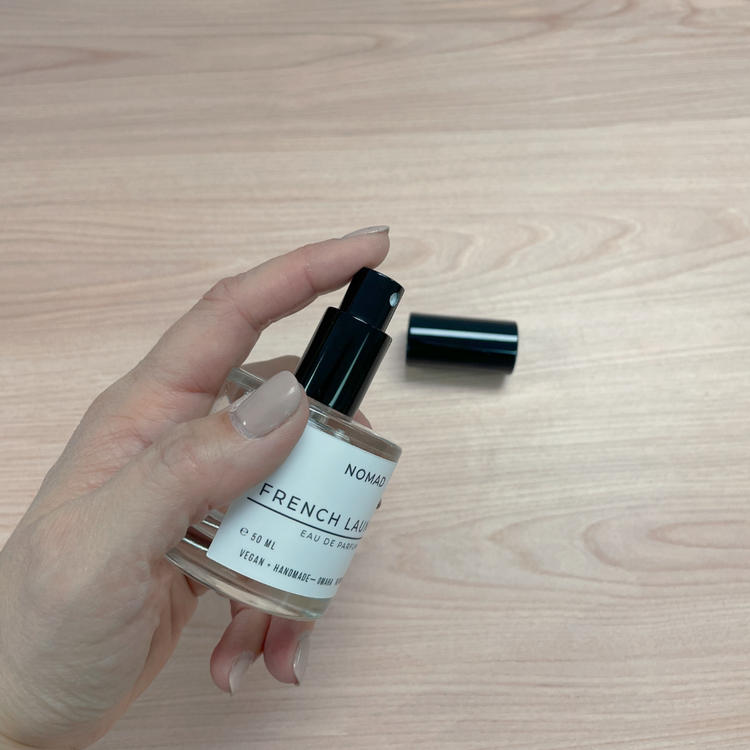 French Laundry is a fresh, clean and sophisticated scent of basil and peppermint essential oils blended with french lavender blossom and crisp cucumber with a subtle hint of sea salt. Feels like walking through clean laundry hanging on the clothesline in the sunny southern French countryside. Our eau de parfum is a mid-level concentration that carries a broader sillage.