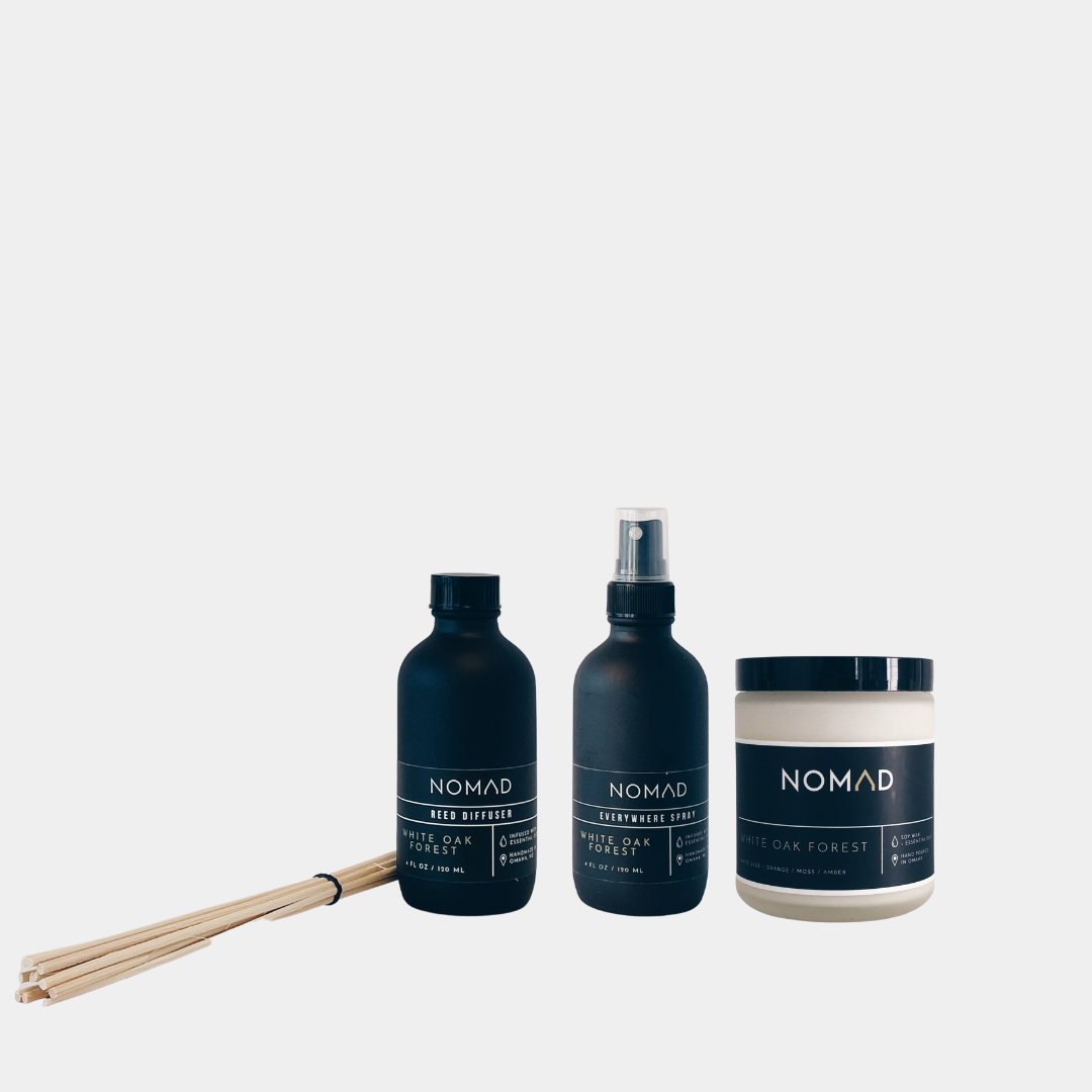 WHITE OAK FOREST is a clean, woodsy scent infused with pure sage, lavandin and orange essential oils combined with lavender and a base of tonka bean and amber.