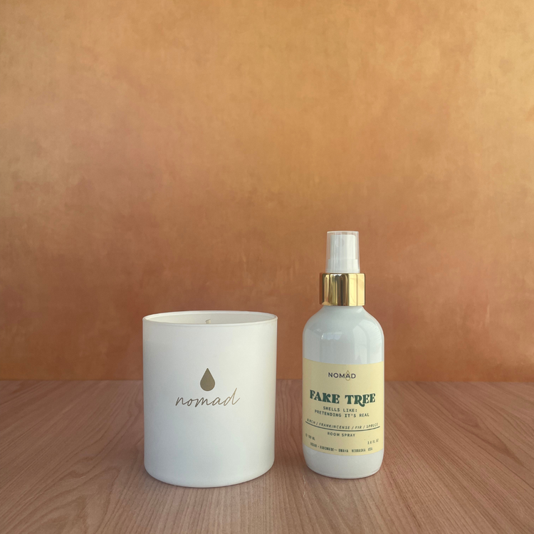Our FAKE TREE holiday scent smells like pretending it's real...because, well, sometimes faking it is the only way to get through it. Plus, no dry needles to vacuum up daily. This woodsy holiday scent is infused with spruce, pine, fir, birch, balsam and a touch of frankincense. A crisp holiday scent that can make your whole house smell like that fake tree is real, just like when you pretend to REALLY like Aunt Edna's cheese ball.