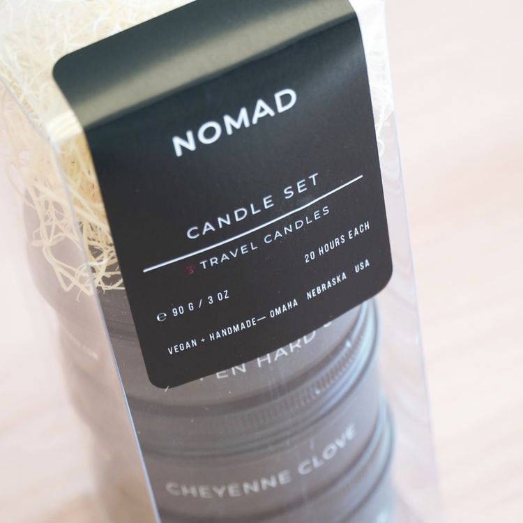 The perfect entry point for discovering your favorite Nomad holiday scent. Our Holiday Travel Candle Gift Set features four travel tin candles with a mix of scents and a Nomad matchbox. The 3 oz size gives you just enough burn time to decide if it's like, lust or love or make the perfect gift.