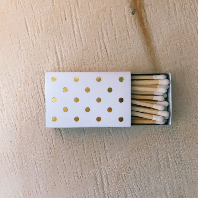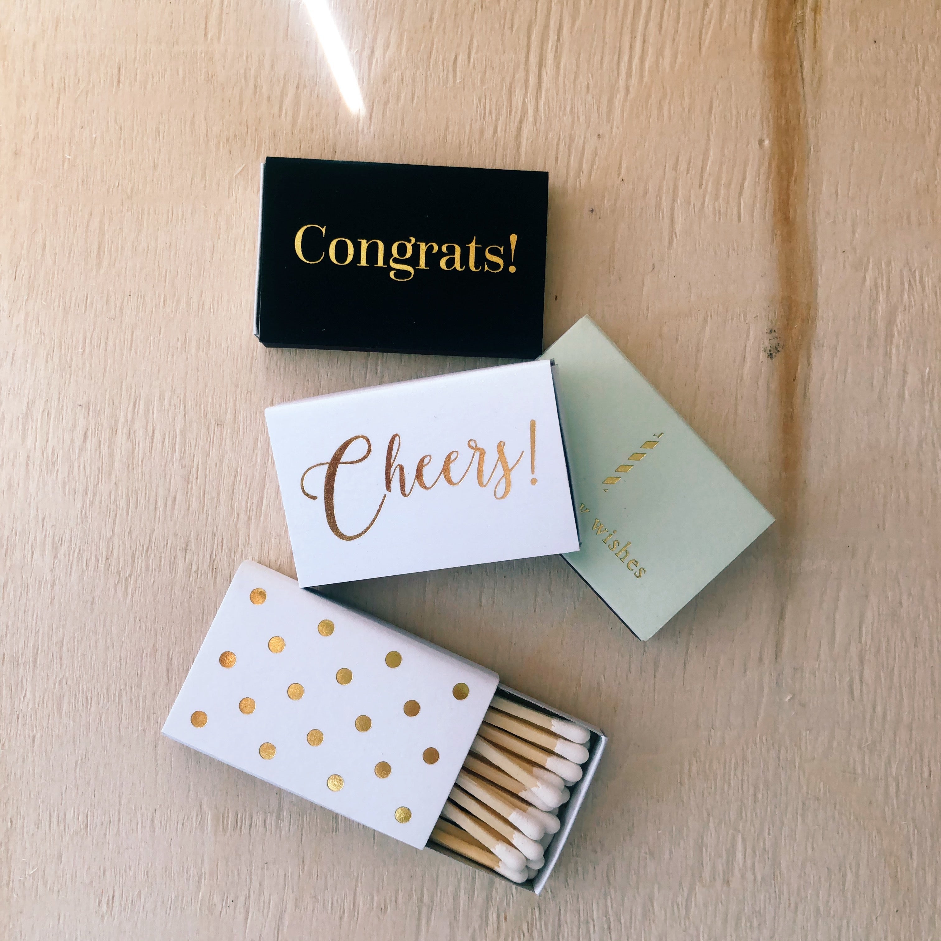 Mini gold foil stamped matchboxes for any occasion! Whether it's your sister's promotion, your bestie's wedding, your sweetheart's birthday or just because, it's always a good time to have these adorable matchboxes on hand to celebrate the joyous occasion. The matchboxes are beautifully foil stamped on both sides. Paired with our candles, these matchboxes make a perfect gift.