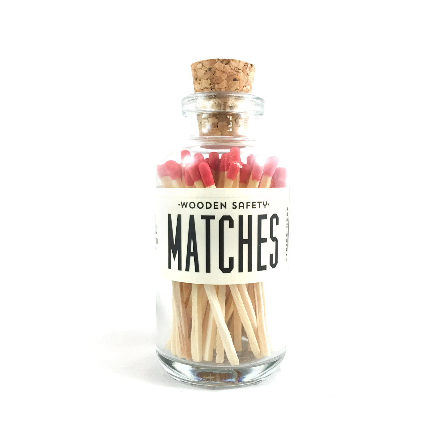 These red wood matches in a stylish apothecary bottle are both beautiful and functional. They look great with your decor and are long enough to light your favorite container candles. Simple modern labels, stylish color and a cork top seamlessly curated for you to enjoy. Strike-on-bottle design includes a striker strip on the back of the bottle for lighting matches.