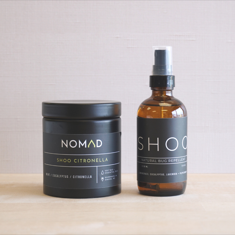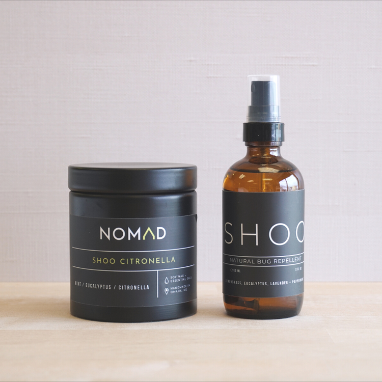Our SHOO Citronella soy patio candle will keep the mosquitos, no-see-ums and other pesky buggers away so that you can enjoy your outdoor time in peace. Infused with the oil of the Indonesian citronella plant, the most effective at repelling mosquitos, our patio candles combine natural essential oils for a pleasing + effective scent for bug-free time in The Nature. We have been told that it is perhaps the best-smelling Citronella candle on the planet. Add our natural anti-bug aromatherapy spray and make it a bundle!